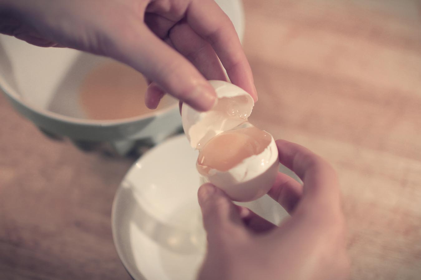 Separate your eggs, keeping the yolks in a slightly larger bowl. Place the whites in a small bowl for whipping in a future step.