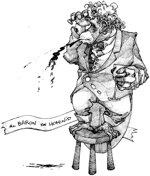 height of his fame. When he performed, the Baron always wore a three-piece suit, a tiny cream ascot, and a golden wig with a white elastic band that ran under his chin to keep his hair steady. His feet were bare, not even socks. If you’re going to go through the trouble of putting a three-piece suit on a chimp, you would think you’d have the stamina to put on socks. But the professor didn’t. The Baron stood on naked toes to sign his three words for anyone who paid to watch. The Baron was such a quick study that he would keep making the signs even after he had left the stage. The professor and his family got so used to the Baron and his signs, that they stopped paying attention. So that in the dim hallways of that brownstone, the chimp would hold up his hands, wrists hampered by fake silver cufflinks, and sign “house, man, boy” over and over again to nobody. When the professor couldn’t break even on the lecture circuit, he sold the Baron to a vineyard in Northern California. The vintner trained him to take great gulps of wine in his mouth, swill the liquid around with his tongue and then spit thin red streams into the air over his head, all while dressed in his formal attire. A year into his new profession, the Baron died of a weak liver, his teeth rotted down to the jawbone, his ascot stained with wine, suffering from the culmination of a hundred hangovers, never cured. |