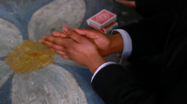 Matthew Holtzclaw and Prakash Puru practice classic sleight-of-hand and "mentalism"--to the disbelief of fellow Fortnight contributor, singer Tamar Korn.