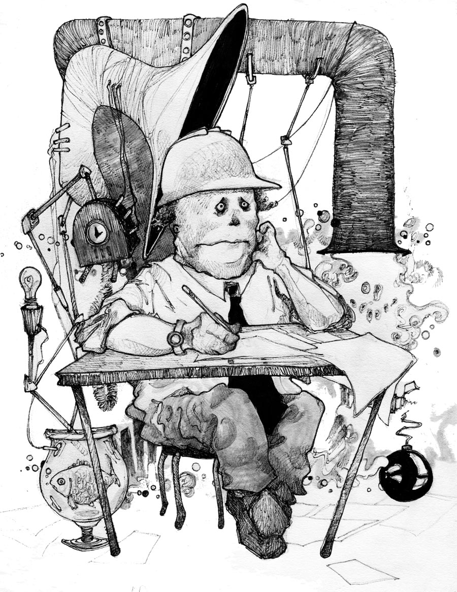 He is but a small man lost inside a complex machine, frantically trying to make it do his work.