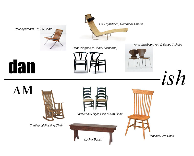 very best techniques and materials available. As a designer, I have always found myself drawn to the simplest forms As I discovered upon working with the furniture shop Shimna, America does actually have its own tradition that slowly tweaked designs to produce considered objects, built to last: Pennsylvanian Dutch design of the Amish Community.and austere beauty. In working closely with both Danish and Amish woodworkers, I found that both communities share a certain dark sense of humor. I think this is because both furniture-making traditions developed out of adversity. The Amish originated in Germany and Switzerland, becoming immigrants to America in the late 19th century because they fled religious persecution. The Danish Modern movement developed directly after the Nazi occupation of Denmark. And from my perspective, this event still affects the Danish people and influenced the development of their philosophy of industry. I studied in Denmark at the Danmarks Designskole, culminating in an intensive workshop where we had three months to build a chair. That sounds simple enough, but the Danes taught me that a |