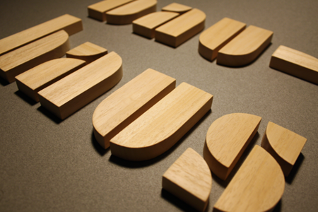 SIMPLIFIED BY HUMAN CRAFT, TYPOGRAPHY BECOMES TOY. XAVI RECALLS BAUHAUS IN HIS FATHER'S WOODSHOP.
