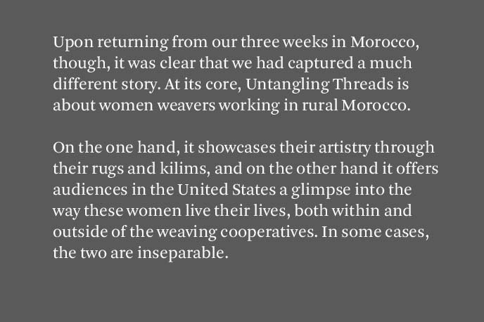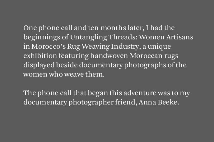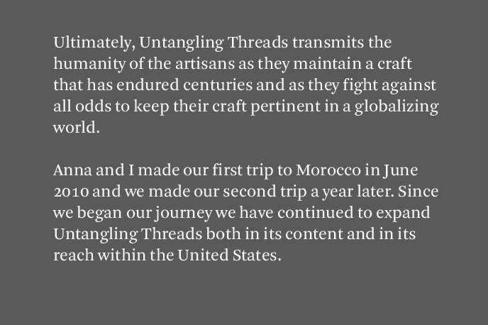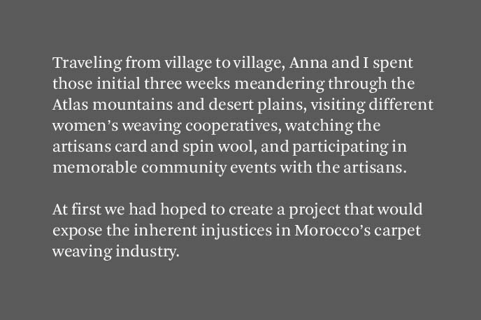 Alia Kate is the founder of Kantara, founded 2008, a fair trade rug importing business that sources hand woven rugs directly from women artisans in rural areas of Morocco. She graduated from Oberlin College and worked in Morocco for a private consulting firm. She currently lives and works from Brooklyn, NY.