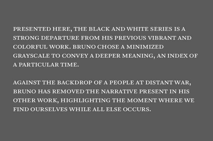 BRUNO PAINTS CANDID BLACK AND WHITES AMIDST WAR.