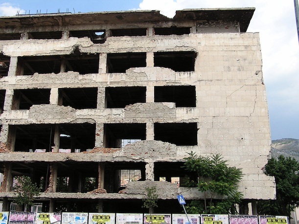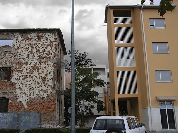 Reconstruction of a residential block done with an intention of applying ‘make up’ and trying to cover the physical brutality of war.