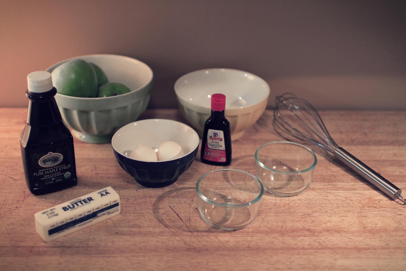Pour all of the maple syrup in a small saucepan and reduce the liquid to half its original volume on medium high heat. When the maple syrup becomes a very dark caramel, add the apples to the warm syrup and stir in.