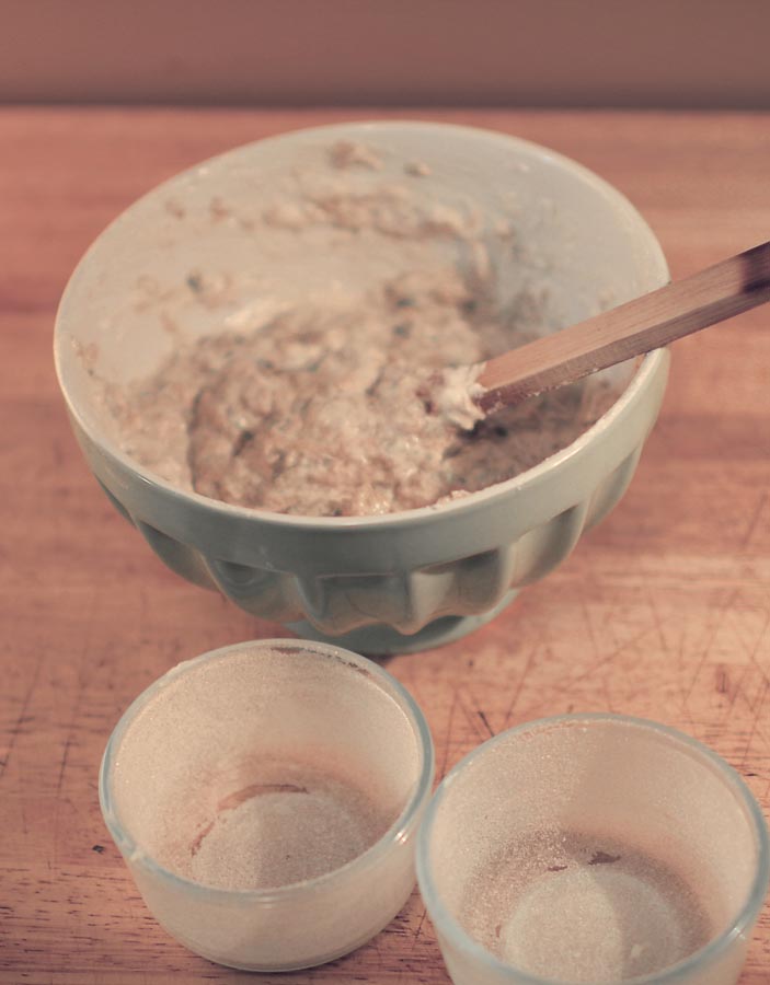 Brush the inside of the baking dishes generously with soft butter. Brush the butter upwards along the side of the dishes to ensure proper coverage. Dust the buttered baking dishes with enough sugar to coat the inside and tap out the excess. Place the baking dishes in the refrigerator until the soufflé batter is ready.