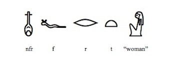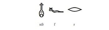 Jean Capart, 1968, Je lis les hiéroglyphes. Presses Universitaires de Bruxelles, Brussels.![]() (1) This sign represents the consonantal root nfr. In Egyptian, as in some modern, related languages like Arabic and Hebrew, words that share a consonantal root are conceptually related to each other. Words having to do with that concept are formed by adding vowels, prefixes, and suffixes to the root. For example, in Arabic, the consonantal root ktb has to do with “writing.” Kātib means “writer,” while kitab is the word for “book.” In Egyptian, nfr is a root for words connected to “beauty” or “goodness.” ![]() |