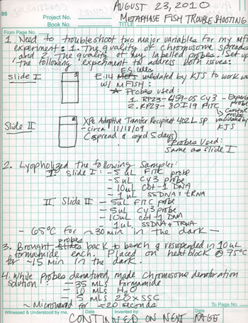 Besides detailing the rote sequence of experimental events, the scientist’s notebook is a place to develop thoughts, ideas, and questions while seeking scientific truths. Science is a dynamic process; therefore, hypotheses can change swiftly and a record of this progress is critical.