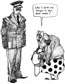 Rajiv, 25-year-old veteran of the War in Afghanistan, adamantly opposes cultural reverence towards those of service status based on "charity." Describing a jarring recent moment of mistaken identity, Rajiv illustrates a "wall" between soldiers, and the people they serve. He asserts his need to educate fellow Americans who are ignorant of the basic nomenclature of military operations—and, of the critical function of rank structures to his vocation.