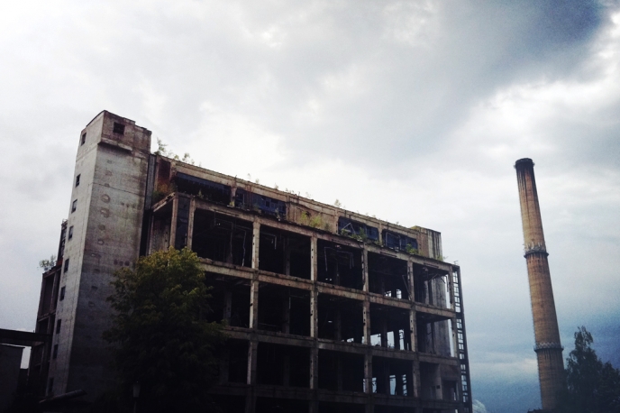 Fields of rubble; forests of abandoned chimneys; enormous skeletons of concrete girders; vast vertical plains of corrugated iron and smashed windows; processions of square concrete columns leading nowhere except to churned-up wasteland; rusting iron staircases rising or falling to or from a void; immense trellises of ironwork, supporting nothing; crumbling concrete tanks, silos, and water towers. It is as if a gray-brown organism that solidified into immovable detritus had invaded the earth and spread malignantly, eating up the landscape for miles around. Only occasionally is a village to be seen in the background, in the midst of which there is a church—anything not of ferro-concrete now appears like a masterpiece by Brunelleschi. But the vast industrial complex of ruins dominates all: the horizon, the eye, one’s very thoughts. There is no escaping it; as there was never any intention that you should be able to escape it. Daniels, Anthony (a.k.a. "Theodore Dalrymple"). "Always in the wrong place: On the relics of oppression." The New Criterion, June 2009. |