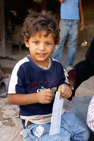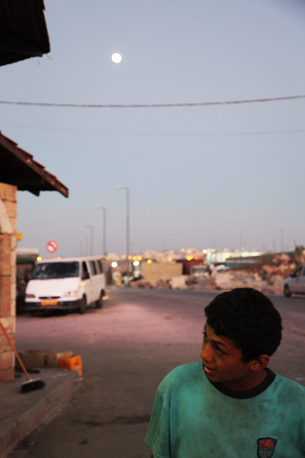 Two boys, playing in front of Qalandia checkpoint, run towards us and boast that they have just thrown stones at Israeli soldiers.