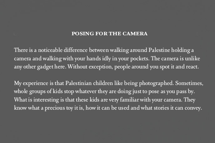 AID WORKERS ENCOUNTER SMALL SOULS. A CAMERA PROVOKES CURIOSITY IN THE CHILDREN OF RAMALLAH.