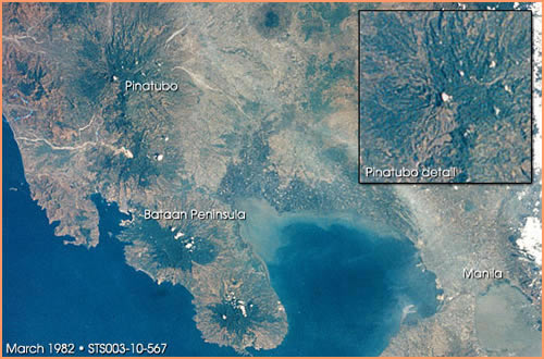1991: The Eruption of Mount Pinatubo Mount Pinatubo is located on the southwestern side of Luzon, the largest island of The Philippines. Up until the late 20th century, Pinatubo was just another mountain in the Zambales range, none of which were thought to be active. The last eruption had occurred 500 years prior. Luzon, however, is close to the Manila Trench, the subduction zone where the Eurasian Plate forces itself below a complex group of microplates known as the Philippine Mobile Belt. As the PMB is one of the most seismically active locations on the Ring of Fire, it was probably only a matter of time. |