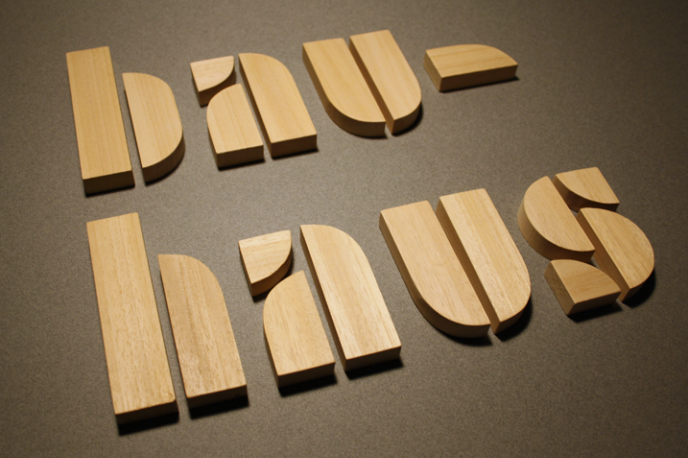 SIMPLIFIED BY HUMAN CRAFT, TYPOGRAPHY BECOMES TOY. XAVI RECALLS BAUHAUS IN HIS FATHER'S WOODSHOP.