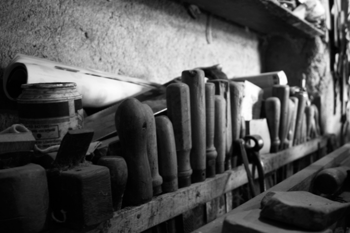 An image of Xavi's Grandfather's workshop, where they worked together to craft these playful letterforms